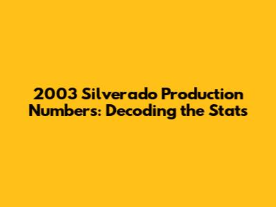 Hey truck enthusiasts! Let's dive deep into the 2003 Silverado production numbers. This was a pivotal year for the Silverado, and understanding the production figures gives us a cool insight into its popularity and the different configurations that were rolling off the assembly line. We'll break down the numbers, talk about the different models, and see what the stats tell us about this iconic truck's legacy. So, buckle up, and let's get started!