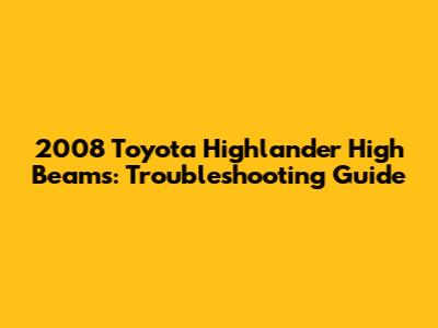 2008 Toyota Highlander High Beams: Troubleshooting Guide