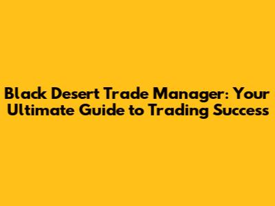 Hey guys! So you're looking to dive into the world of Black Desert Online (BDO) trading, huh? Awesome! It's a fantastic way to make some serious silver, but it can seem a bit overwhelming at first. Don't worry, I'm here to break down everything you need to know about the Black Desert Trade Manager – think of it as your secret weapon to becoming a trading tycoon. We'll cover everything from the basics to advanced strategies, helping you navigate the bustling marketplaces and maximize your profits. Get ready to learn how to master the art of trade, optimize your routes, and build a trading empire. Let's get started!