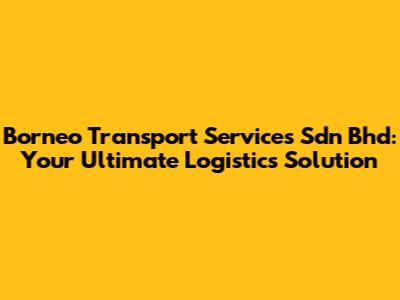 What Exactly Does Borneo Transport Services Sdn Bhd Do?