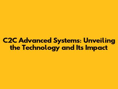 Hey there, tech enthusiasts! Ever heard of C2C Advanced Systems? If you're scratching your head, don't worry – you're in the right place. We're diving deep into the world of C2C Advanced Systems, exploring what it is, how it works, and why it's making waves in various industries. So, buckle up, because we're about to embark on a journey to understand this fascinating technology.
