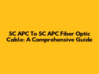 SC APC To SC APC Fiber Optic Cable: A Comprehensive Guide