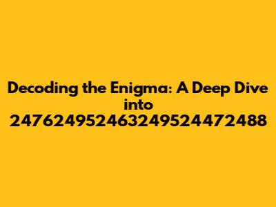 Hey there, data enthusiasts! Ever stumbled upon a numerical sequence that just screams mystery? Well, buckle up, because we're about to crack the code on 247624952463249524472488. Now, I know what you're thinking: “What is this thing?” And honestly, that's a fantastic question! This seemingly random string of numbers is the starting point of our investigation. We're going to transform this string of digits into something understandable. This isn’t just about the numbers themselves, but about exploring the why and the how. Could it be a date, an identification code, a complex product key, or a fragment of a larger system? Let's get down to it, guys! We'll be using different strategies to break down this series of digits. We'll start with the basics, like looking at the length and structure, and then we'll move on to more advanced techniques like comparing it to different datasets. And along the way, we'll discover the potential meanings hidden within 247624952463249524472488. You might be surprised at what we find! Let’s begin our adventure into the world of numbers! We will cover all possible techniques, all possible meanings, and we will finally get the answers to all your questions! And who knows? Maybe we will even find the holy grail of this particular sequence of digits.