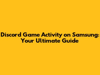 Discord Game Activity On Samsung: Your Ultimate Guide