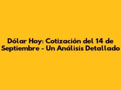 Dólar Hoy: Cotización Del 14 De Septiembre - Análisis Y Perspectivas