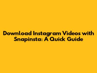 Are you looking for a way to download Instagram videos? Look no further! In this guide, we'll walk you through everything you need to know about using Snapinsta, a popular tool for downloading videos from Instagram. Whether you want to save your favorite clips, archive content, or simply watch videos offline, Snapinsta makes it easy. Let's dive in!