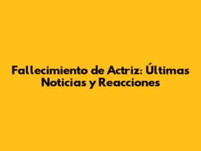 Fallecimiento De Actriz: Últimas Noticias Y Reacciones