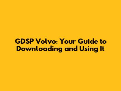 GDSP Volvo: Your Guide To Downloading And Using It