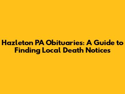 Hey guys! Are you looking for information on Hazleton PA obituaries? Maybe you're trying to find details about a loved one, or perhaps you're just curious about who has recently passed in the Hazleton area. Whatever your reason, this guide is designed to help you navigate the process of finding local death notices. We'll delve into where to find obituaries, what information they typically contain, and why they're so important. Let's get started!
