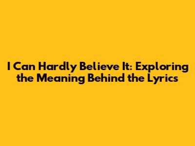 I Can Hardly Believe It: Exploring The Meaning Behind The Lyrics
