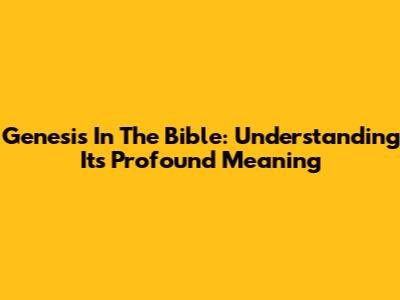 Genesis In The Bible: Understanding Its Profound Meaning