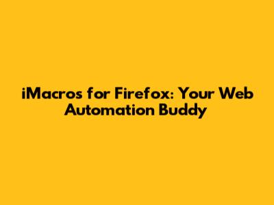 Hey guys! Ever feel like you're doing the same repetitive tasks online over and over again? Like filling out forms, clicking on links, or downloading data? It's a total drag, right? Well, what if I told you there's a super cool tool that can do all that tedious stuff for you automatically? Get ready to meet iMacros for Firefox, your new best friend for web automation! This browser extension is a game-changer, letting you record and replay your actions on websites. Think of it like a personal robot for your browser. Whether you're a student crunching data, a marketer testing campaigns, or just someone who wants to save time, iMacros for Firefox is here to make your online life so much easier. We'll dive deep into what makes this tool so awesome, how you can get started, and some cool tricks to supercharge your productivity. So, buckle up, because we're about to explore the magic of automating your web tasks with iMacros for Firefox!