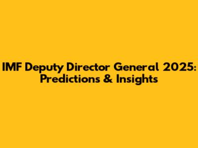 IMF Deputy Director General 2025: Predictions & Insights
