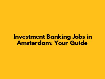 Investment Banking Jobs In Amsterdam: Your Guide