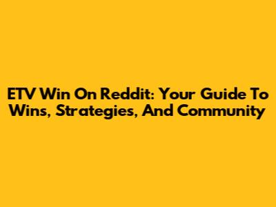 ETV Win On Reddit: Your Guide To Wins, Strategies, And Community