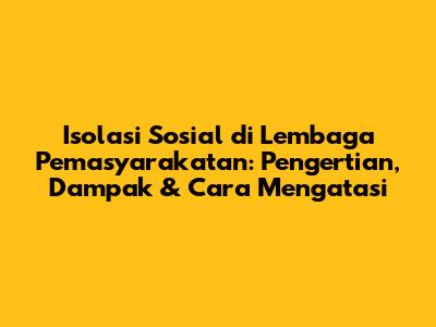 Hey guys! Pernah denger tentang isolasi sosial di lembaga pemasyarakatan (LP)? Atau mungkin lo penasaran, apa sih sebenarnya isolasi sosial itu dan kenapa hal ini jadi perhatian penting, apalagi di lingkungan seperti LP? Nah, di artikel ini, kita bakal kupas tuntas tentang isolasi sosial, khususnya dalam konteks LP. Kita bakal bahas mulai dari pengertiannya, dampaknya yang bisa macem-macem, sampai cara-cara buat mengatasinya. So, stay tuned dan mari kita mulai!