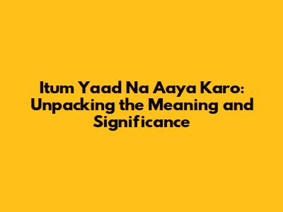 Itum Yaad Na Aaya Karo: Meaning & Significance