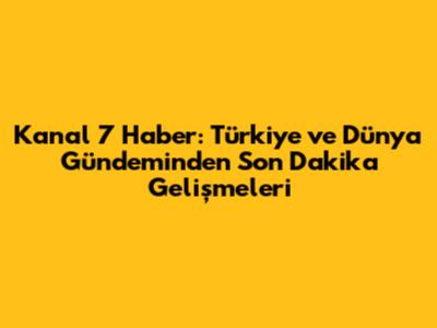 Kanal 7 Haber'in Önemli Haber Başlıkları ve Gündemdeki Konular