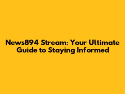 News894 Stream: Your Ultimate Guide To Staying Informed
