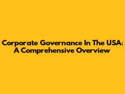 Corporate Governance In The USA: A Comprehensive Overview