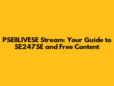 PSEIILIVESE Stream: Your Guide To SE247SE And Free Content