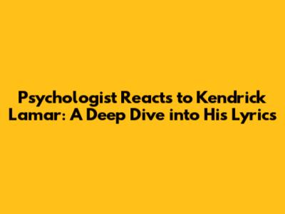 Psychologist Reacts To Kendrick Lamar: Deep Dive!