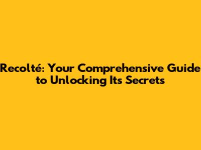 Recolté: The Ultimate Guide To Everything You Need