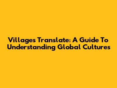 Villages Translate: A Guide To Understanding Global Cultures