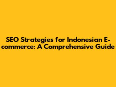 SEO Strategies For Indonesian E-commerce: A Comprehensive Guide