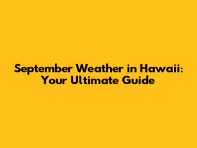The Final Word on the Hawaii Weather Forecast for September