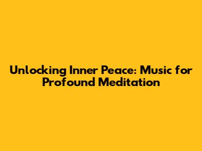 Unlocking Inner Peace: Music For Profound Meditation