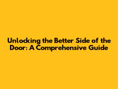 Unlocking The Better Side Of The Door: A Comprehensive Guide