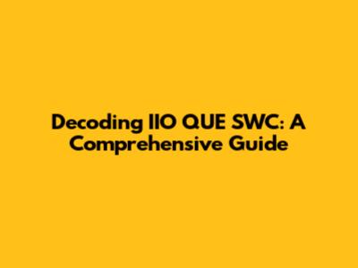 Hey guys, let's dive into something intriguing: IIO QUE SWC. Ever stumbled upon this and wondered what it's all about? Well, you're in the right place! We're going to break down IIO QUE SWC, exploring its meaning, its importance, and why it's something you should know about. This isn't just about throwing around acronyms; it's about understanding concepts and the impact they have. So, buckle up, because we're about to embark on an enlightening journey through the world of IIO QUE SWC.