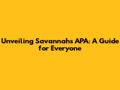 Tips for Success in the Savannah APA