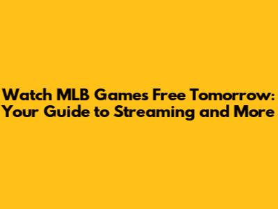 Watch MLB Games Free Tomorrow
