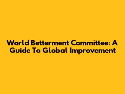 World Betterment Committee: A Guide To Global Improvement
